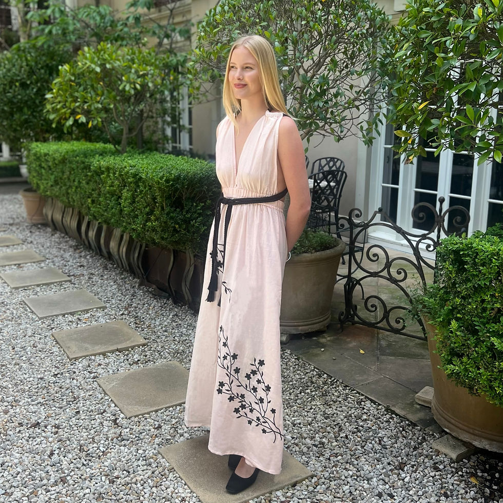 Georgina Linen embroidered Halter Dress - Pink & Black